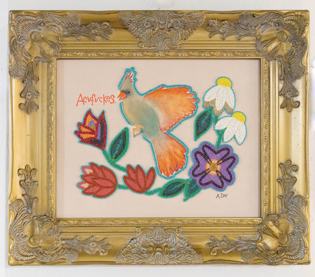 “Traditional Muscogee gone modern with a New York City twist, I provide beautiful fine art for empty spaces and create immersive performance art experiences. After more than a decade performing music on the world stage in NYC, I returned home to Oklahoma where I focus full time on artmaking and creating new work. My original designs, achieved in the form of seed beads and acrylic on canvas, are heavily influenced by my Muscogee (Creek) heritage in addition to my Fuswalgi (Bird clan), all guided by nature. Inspiration for my work comes from my life and collaborations in NYC, and a propensity to always be creating something new, interesting, and relevant.”