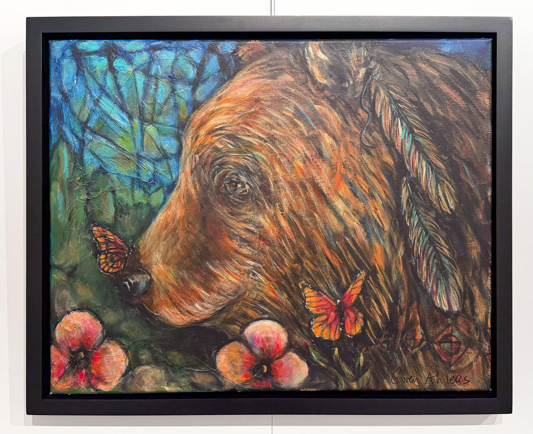 Gwen Ahlers creates paintings and mixed media artworks, expressing subjects in a multi-layered way. Her paintings directly respond to light and shadow through natural spaces. Gwen adds Cherokee patterns and symbols that are hidden within her work using fractured light and painterly brush strokes. Her personal understanding of Cherokee stories and traditions are important to her work. The results meet the division between the realm of memory and the realm of experience.