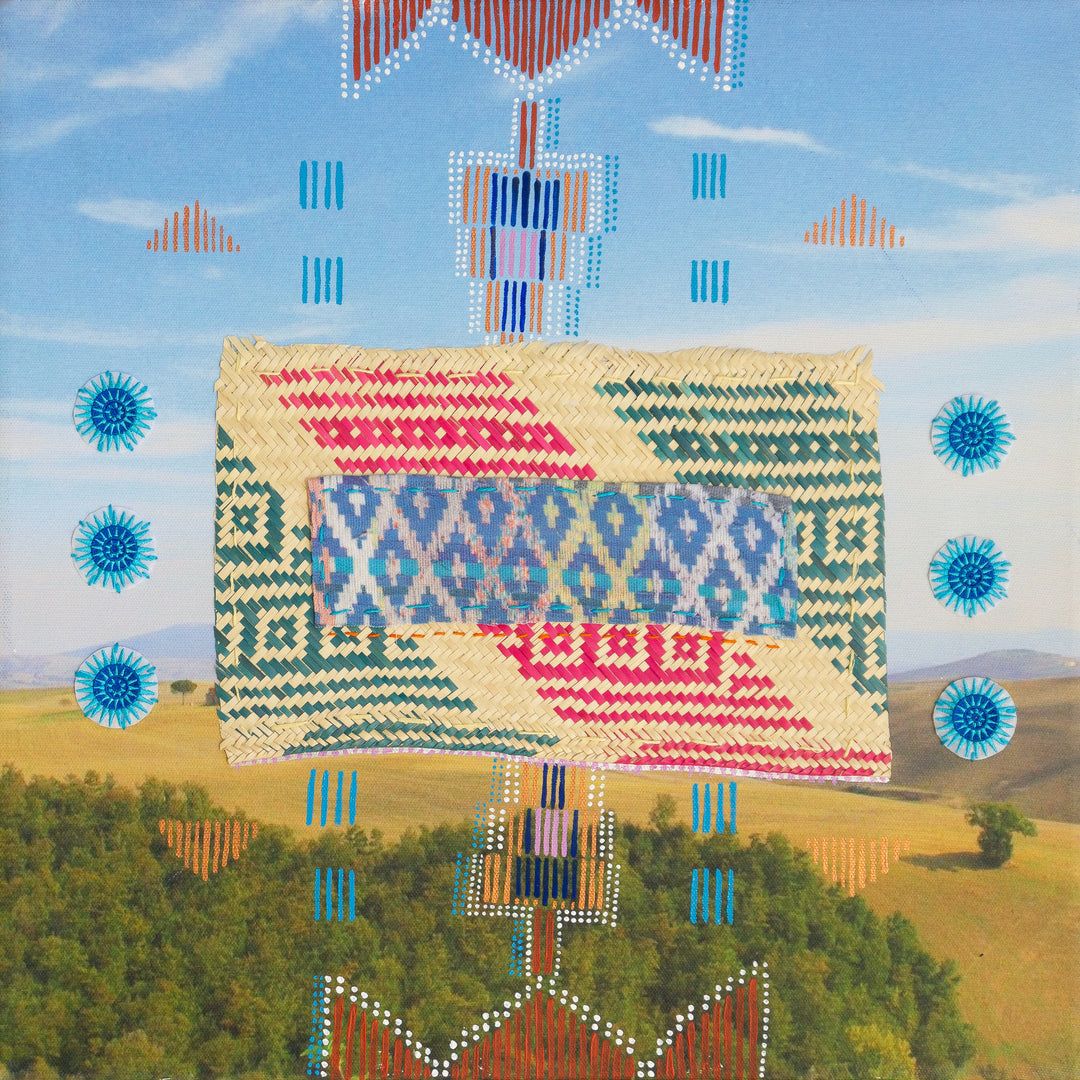 Being a product of Cherokee, Scottish, Swiss-German, and other diaspora, I am, in the very makeup of my DNA, a collage of cultures, values, histories, and personal aesthetics. I react by collaging materials from my ancestors, contemporary community, and personal life experiences. Graphic design, fine art, and fiber are all woven into my ancestral tapestry the same way I weave in and out of mediums in my studio. Sometimes, literally weaving materials.