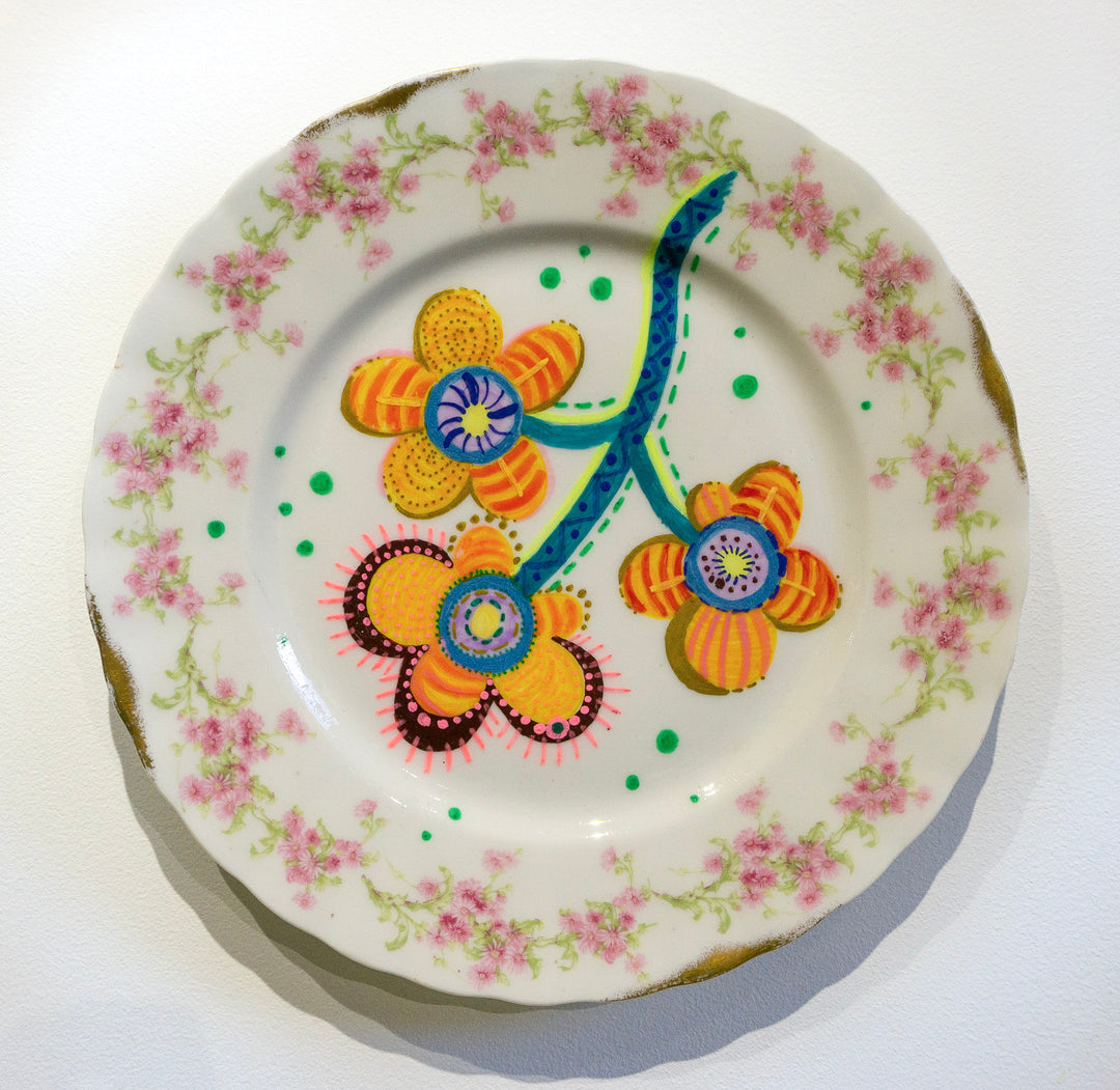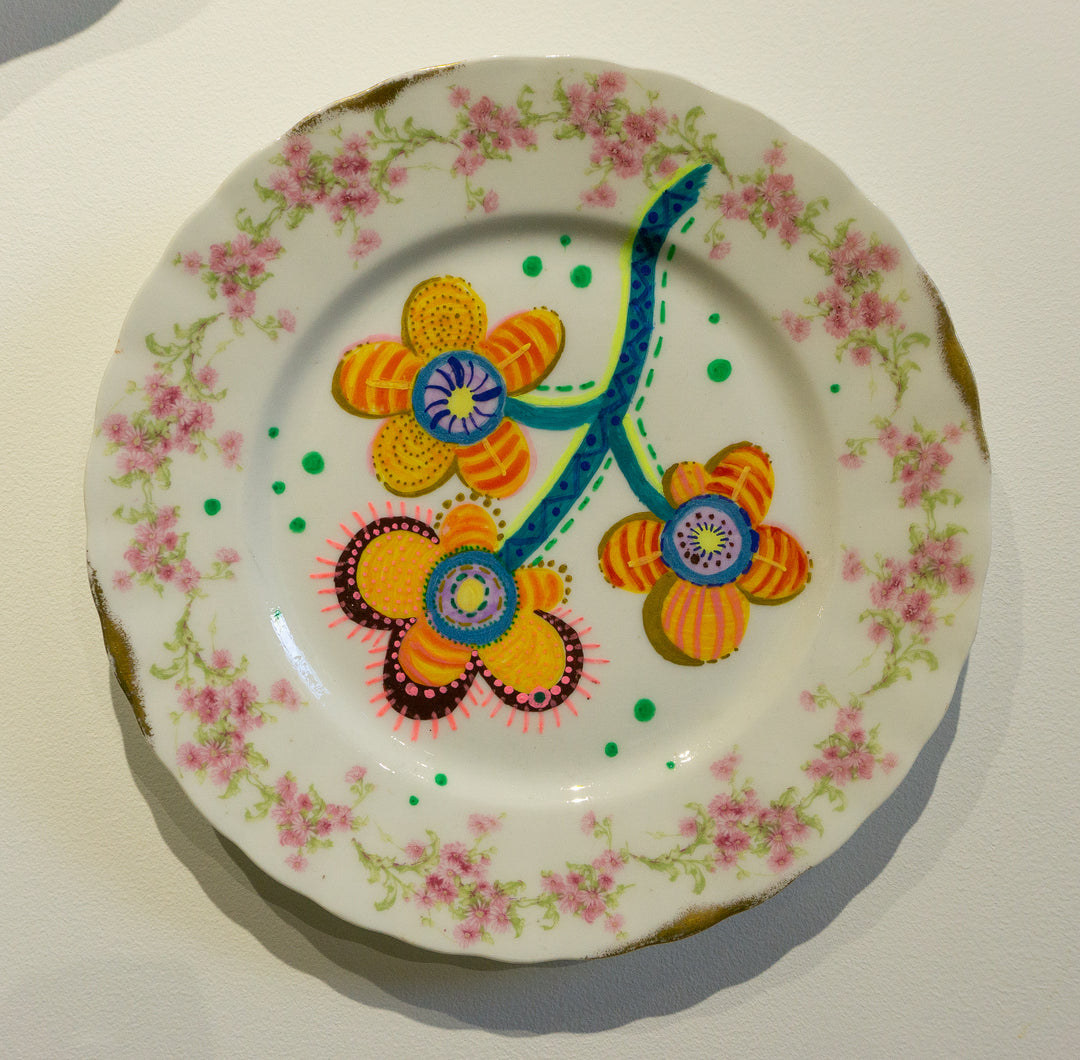 My studio is a flux of mediums and objects in constant conversation with each other: A small original gouache painting gets printed on custom fabric, which goes into a mixed media collage, that informs a piece of wearable art, or adds to the composition of a new gouache painting. Nothing is off-limits to being repurposed and reimagined.