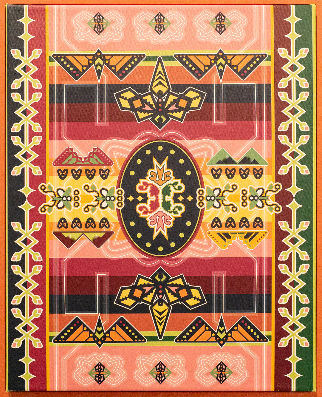Jessica Moore Harjo, Ph.D., Weomepe, Otoe-Missouria, Osage, Pawnee, Sac & Fox, is an interdisciplinary artist, designer, and educator based in Oklahoma. Her approach to art and design is unique, post-traditional, and grounded in cultural symbolism. Her pieces display intricate intersections of traditional ribbonwork, florals, appliqué, elements of nature and other harmonious and symmetric forms with atmospheric color palettes.