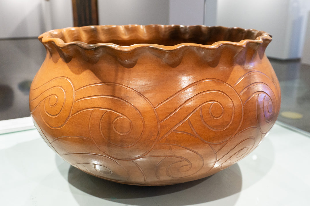 Joanna studied graphic design at the University of Oklahoma where she earned a Bachelor of Fine Arts degree. While there she was introduced to various art disciplines including ceramic sculpture. This sparked an interest to research her tribe’s pottery. With the guidance and encouragement from tribal members, Joanna was able to recreate and help revitalize the art of pottery making for the Chickasaws. Since those early beginnings in 1994, she has since turned her creations into bronze sculptures.