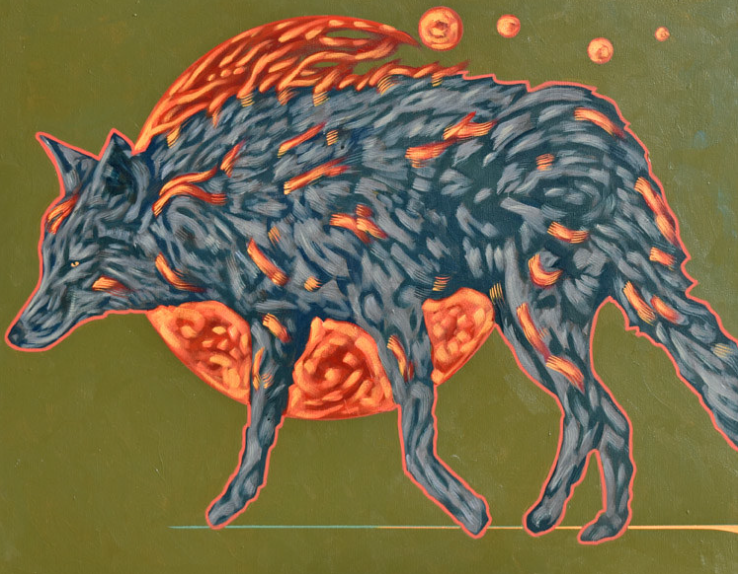 By painting with vibrant pigments onto dark backgrounds Burgess has perfected a method that he describes as “painting outward.” This approach produces the richly contrasting colors of his distinctive canvases and gives his art a vivid depth. Burgess’ paintings inspire and educate through their unusual techniques and positive dialogues between past and present.