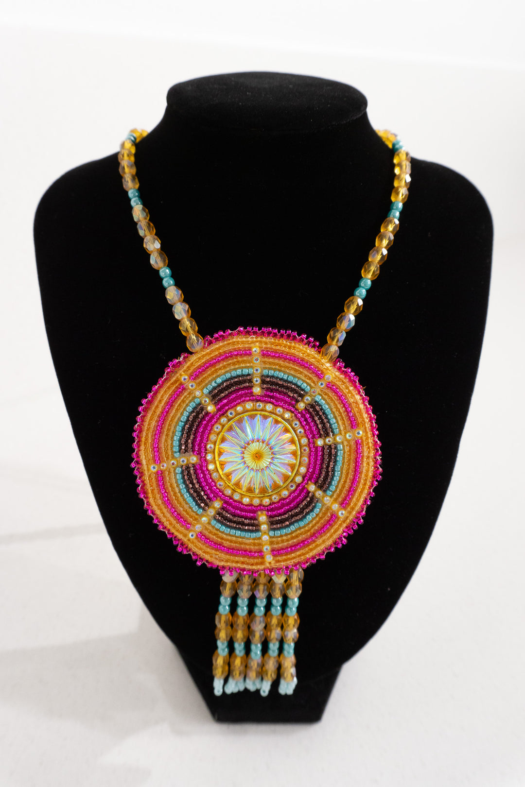 After a forty-seven-year career teaching all levels from third grade to graduate students, I met a special friend who patiently taught me to bead. I love the blending of colors to reflect our natural world and experimenting with patterns to mimic nature.