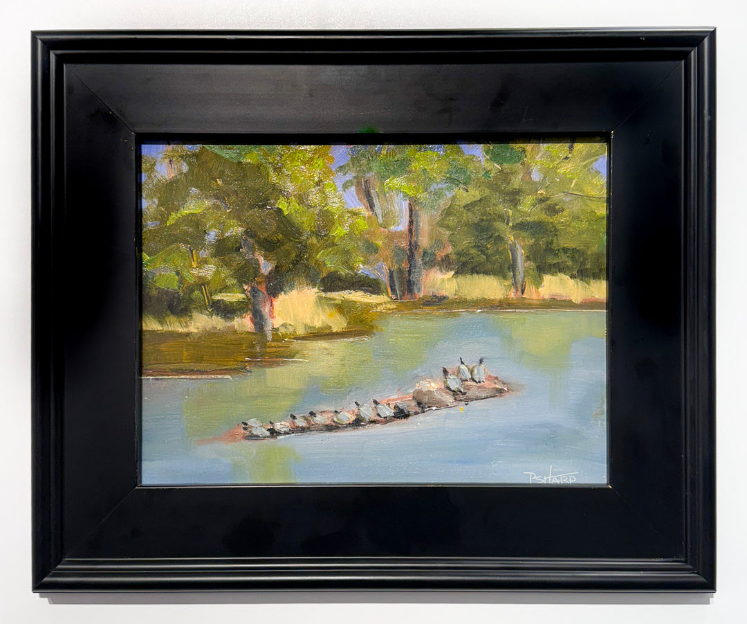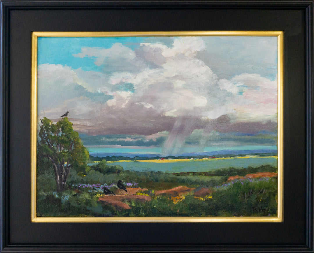 Polly Sharp is a plein air oil landscape artist. She has lived her entire life in Oklahoma. Her paternal great grandmother walked the Trail of Tears with the Cherokee, and her mother's parents pioneered the prairie, coming from Ireland and settling near Miami, Oklahoma. Polly paints the Oklahoma landscape plein air in oils on canvas. Going outside to capture our rolling hills, rambling creeks, magnificent sunrises, big sky cloudscapes, and gentle prairie grasses is her joy. Keeping her gear always ready and loaded, she often rises early to catch the early morning light. On the way to a scouted location, often something will catch her eye and she stops to paint there instead. Polly has been painting plein air about 10 years. She is a self-taught artist, taking private lessons from well-known artists she admires, and online studies. She has studied and taken workshops from Cletus Smith, Rick McClure, Phil Starke, Kelli Folsom, Scott Christensen, and Skip Whitcomb.